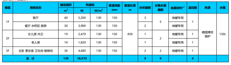 家居集成系統(tǒng):特靈中央空調(diào)系統(tǒng) 博世歐洲之星鍋爐 嘉科米尼地暖管路系統(tǒng) 濱特爾中央水處理 威樂循環(huán)泵
