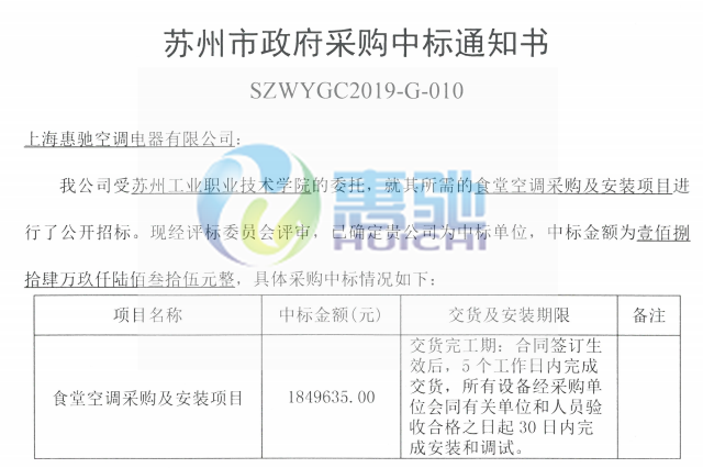 項(xiàng)目名稱:蘇州工業(yè)職業(yè)技術(shù)學(xué)院-食堂空調(diào)系統(tǒng)項(xiàng)目