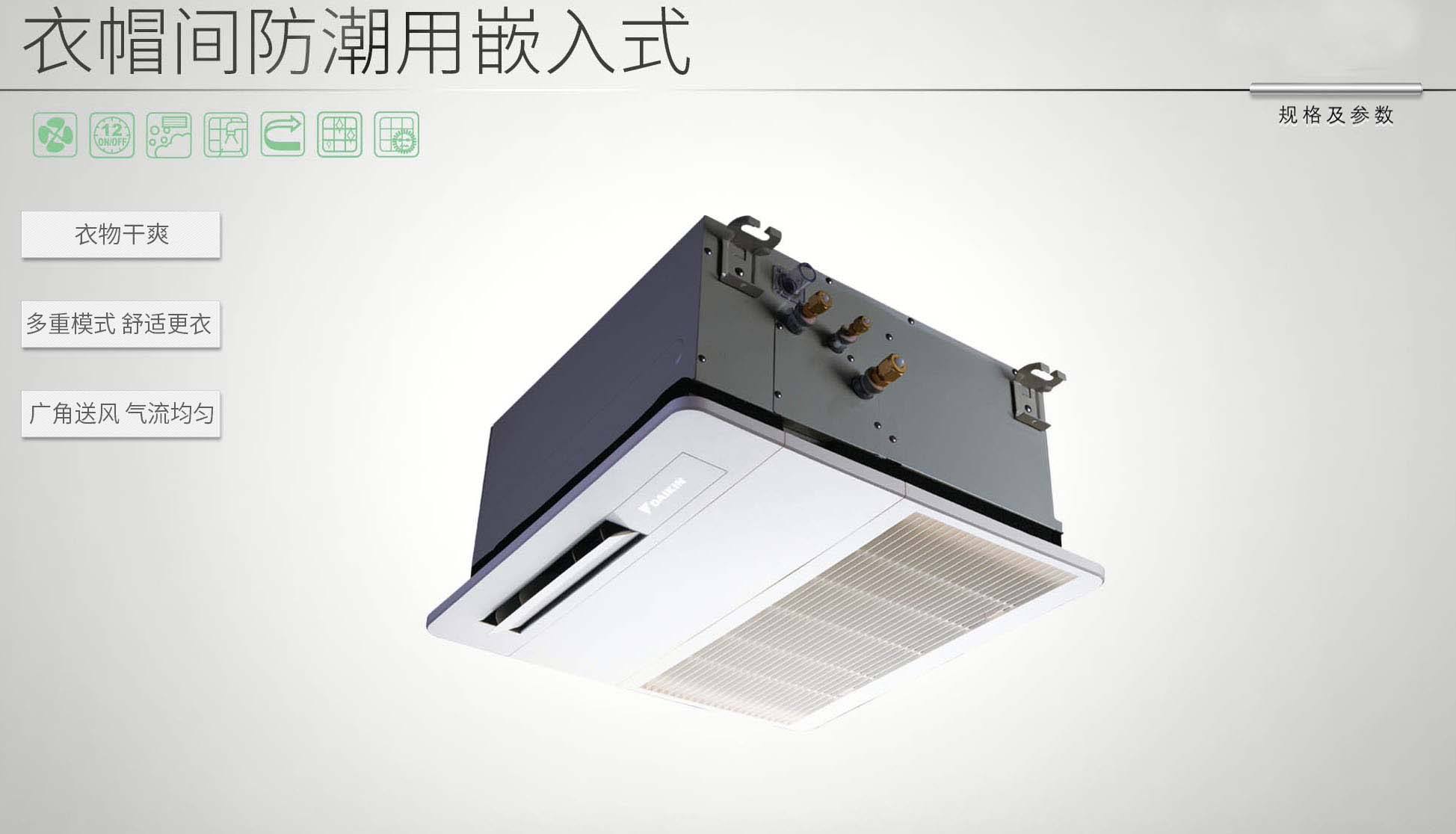 大金衣帽間專用空調(diào),智能檢測,濕度過大時自動開啟除濕模式,運用魔力三管技術(shù),