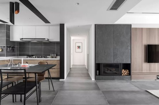 雖然沒有直接光源,卻通過不同形式的光效渲染,生成一種“無影照明”。在墻壁埋藏?zé)魩В専艄庀袼粯酉催^墻面,為空間增添現(xiàn)代感。
