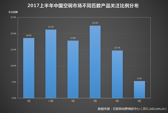 2017年上半年中國空調市場不同匹數產品關注比例分布